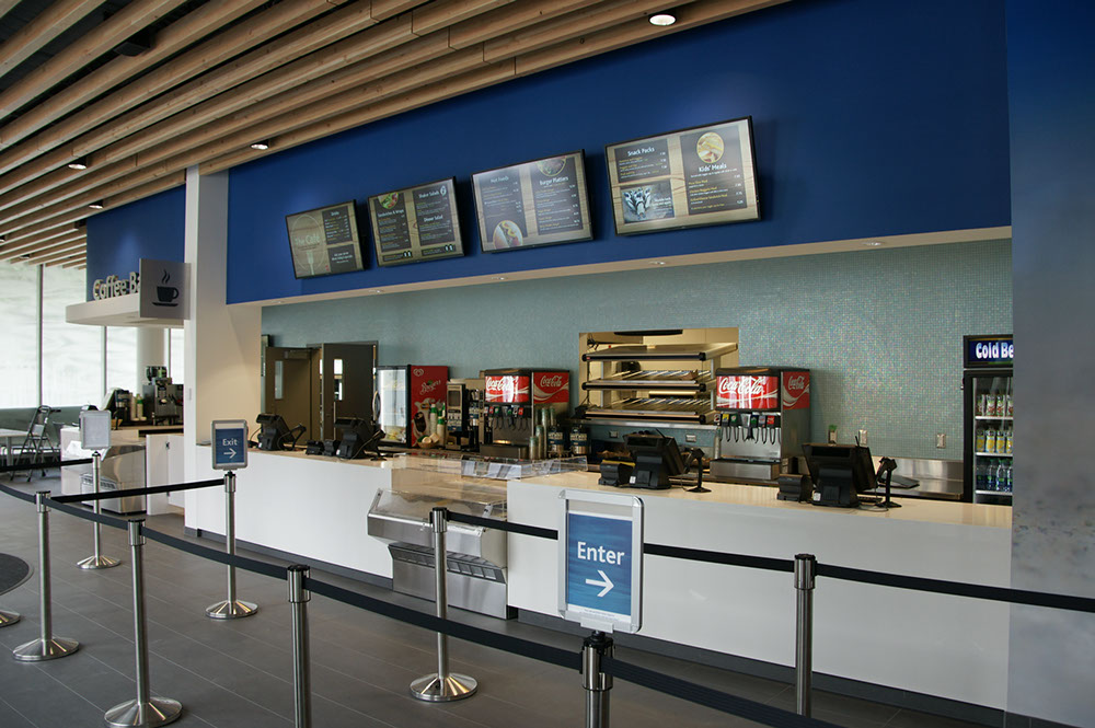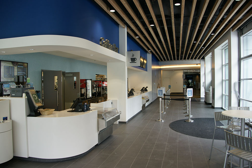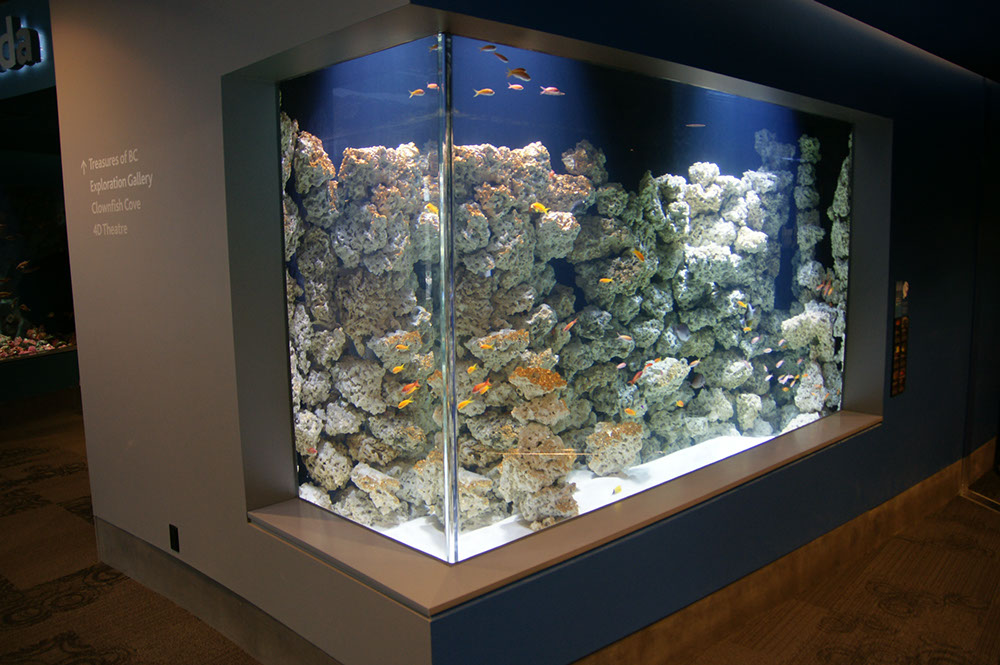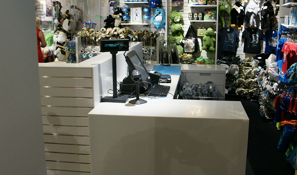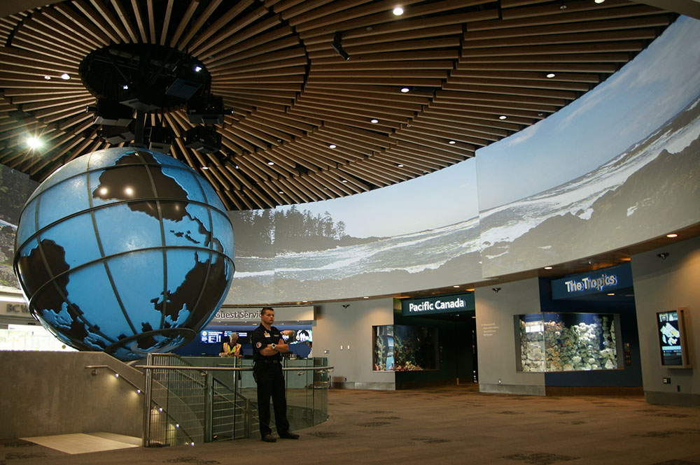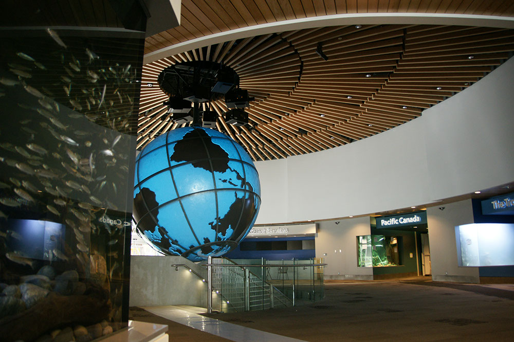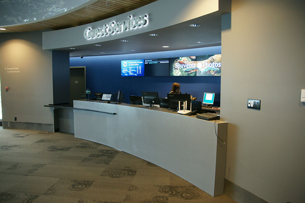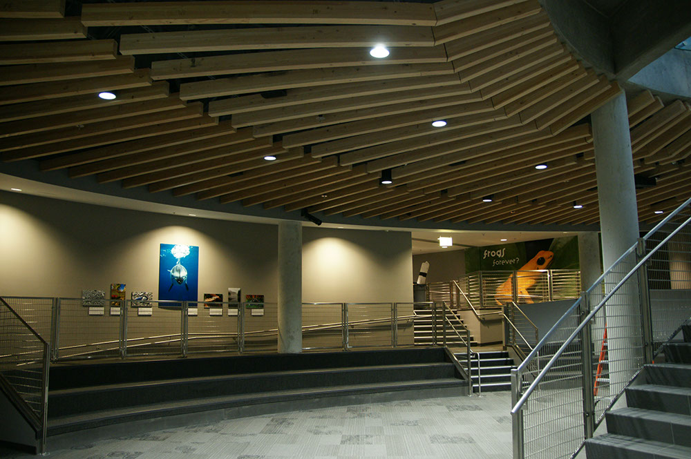 This Award Winning transformation of the Vancouver Aquarium consisted of complex architectural millwork throughout the building. We supplied and installed over 11,000 feet of ceiling beams as well as solid surface and millwork components for the reception desk, gift shop, cafeteria, washrooms and ticket kiosks.