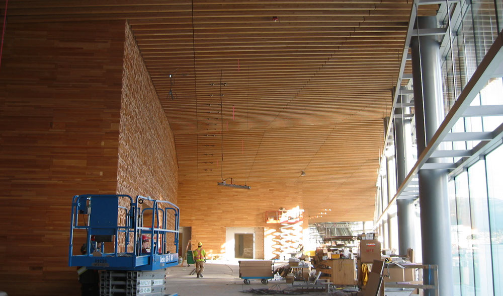 Island Precision's work included the supply and installation of 100,000 square feet of wall paneling and 9000 ceiling beams.